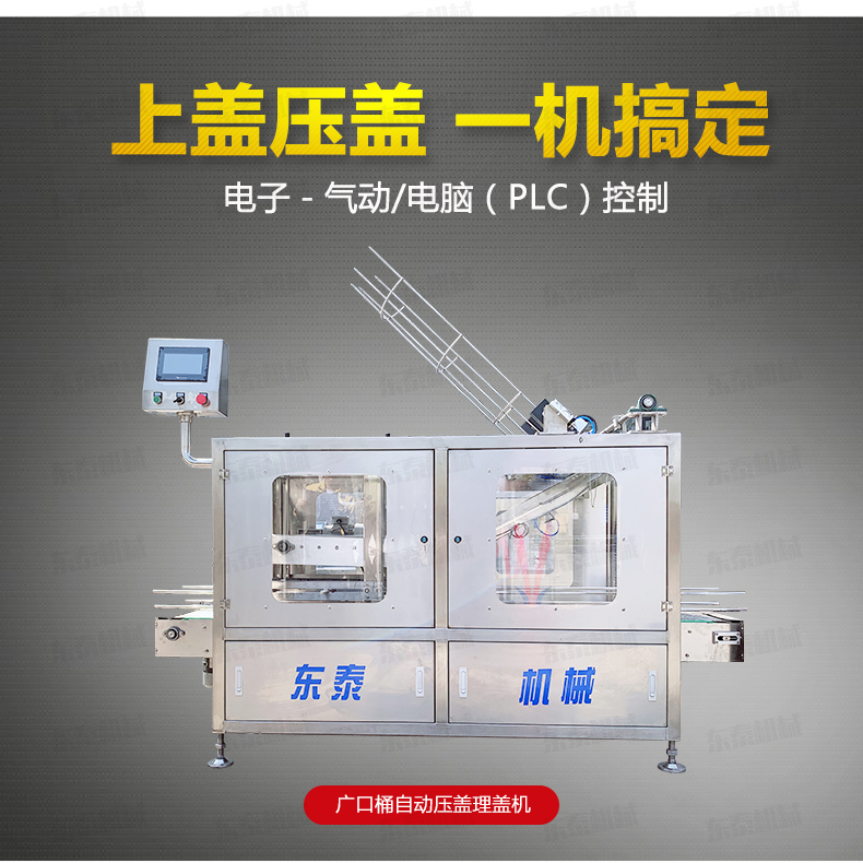 人工放蓋至料倉——自動剝離——自動吸蓋——自動掛蓋——自動滾壓蓋——自動出桶——一個循環(huán)完成。