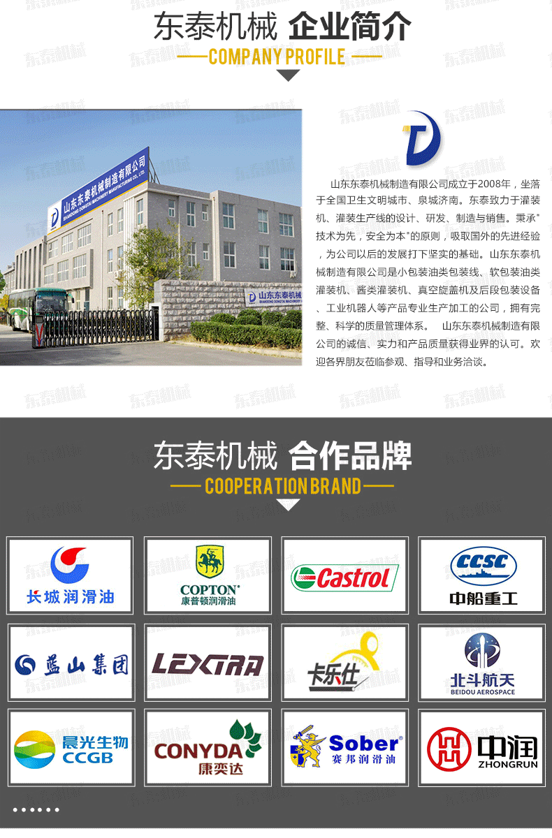 沈陽東泰機械隸屬于山東東泰機械,主營粉劑包裝機、醬類醬料包裝機、食用油灌裝機、食品包裝機、包裝流水線、灌裝生產(chǎn)線等產(chǎn)品,并且為東北地區(qū)客戶提供售后維修服務(wù)...