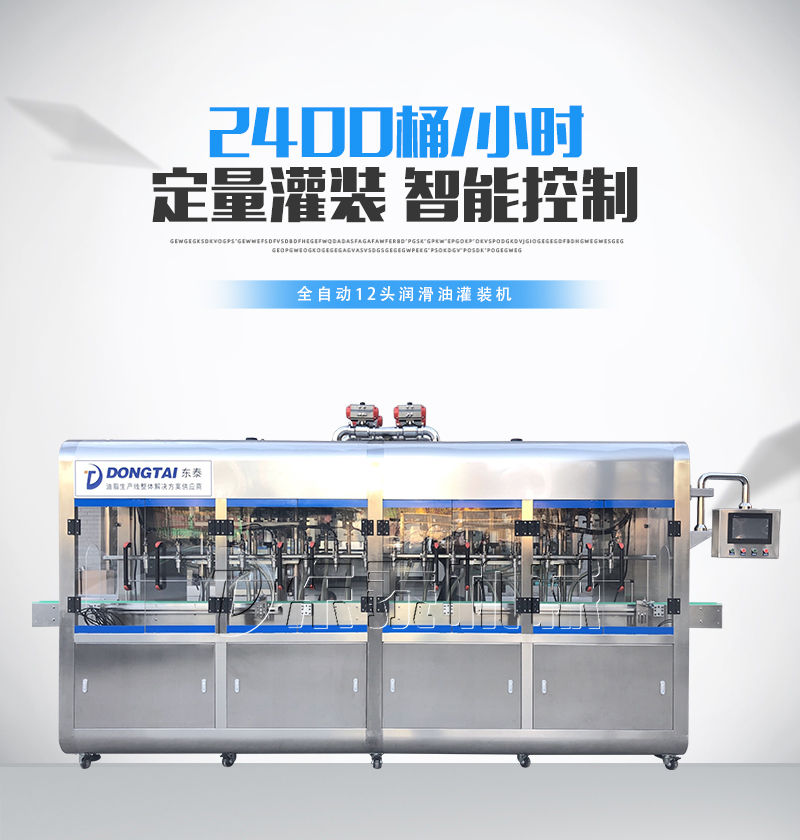 該灌裝機可以配置 高速旋蓋機 油桶貼標(biāo)機 油瓶噴碼機 油壺自動自動裝箱碼垛機。組成油脂灌裝包裝流水線。節(jié)能、自動化的設(shè)備。