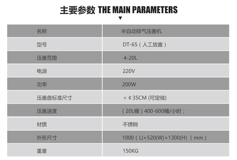 型號:DT-65(人工放蓋)