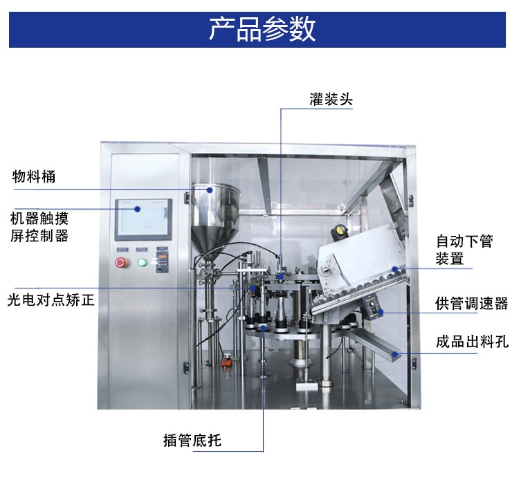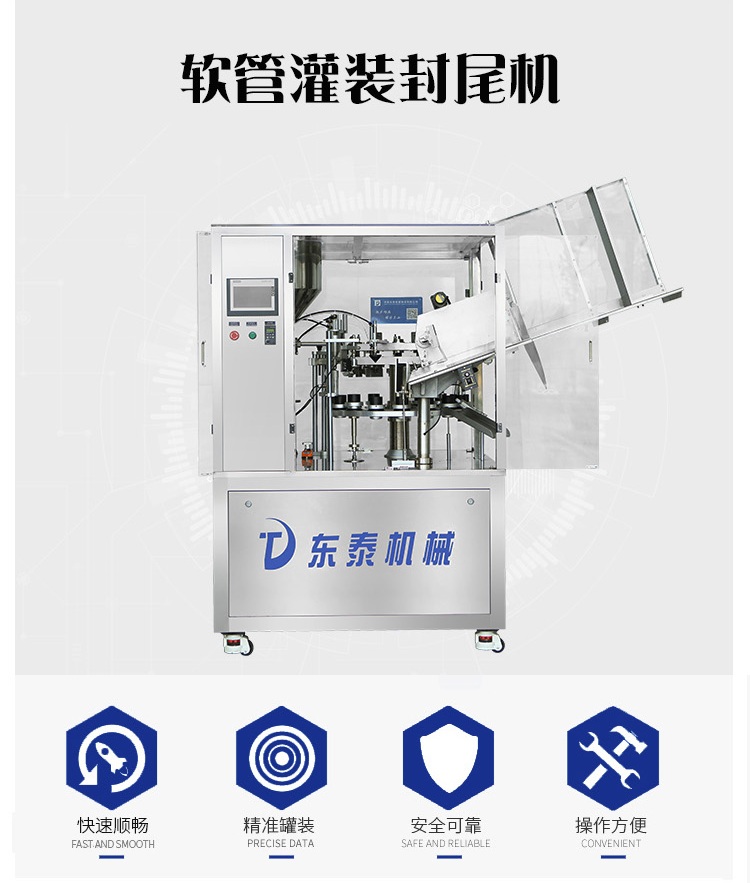 適用于醫(yī)藥、食品、化妝品、日用化工用品等行業(yè)的塑管、鋁塑復(fù)合管灌裝封尾需要。可將各種糊狀、膏狀、粘度流體等物料順利準確地注入軟管中,并完成管內(nèi)熱風(fēng)加熱、封尾和打批號、生產(chǎn)日期等。